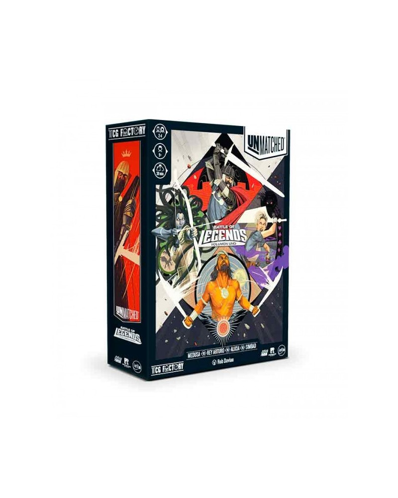 Unmatched Battle of Legends Volumen 1 es la primera caja básica, que incluye cuatro personajes: Simbad, Medusa, Rey Arturo y Alicia.