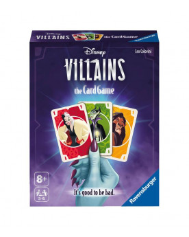 Juego de Cartas: Disney Villanos. Un entretenido juego donde puedes seleccionar el mazo de tu villano favorito: Úrsula, Scar, Capitán Garfio, Cruella de Vil, Maléfica y Jafar.