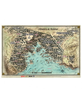 El Mapa de Puerta de Baldur, un producto oficial de DUNGEONS & DRAGONS realizado por GF9 para Descenso a Averno posee una superficie de vinilo de alta calidad, ideal para seguir los progresos de tus aventuras durante la campaña.