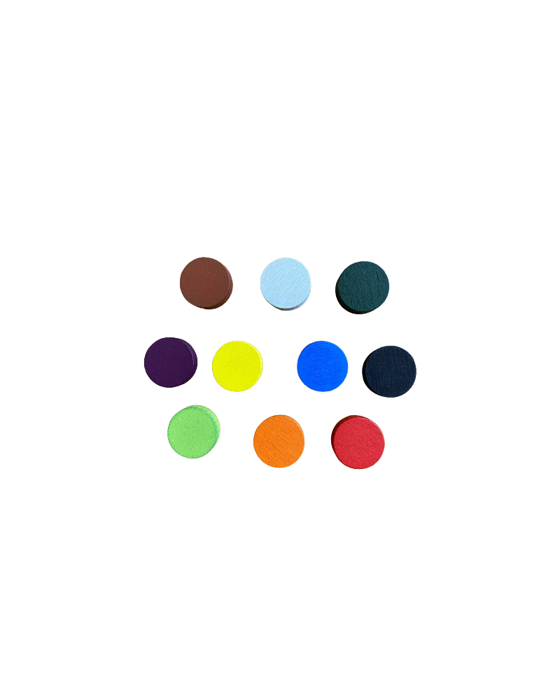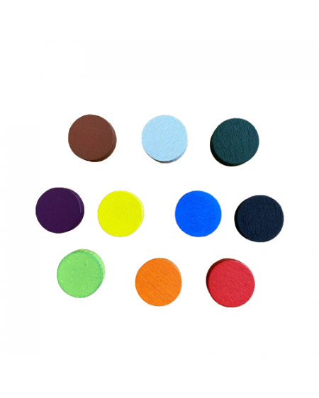 10 Fichas de madera 15 mm multicolor x Set.