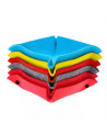 Bandeja de dados cuadrada, de fieltro grueso, con broches en las 4 esquinas, que facilitan el plegado y el despliegue.