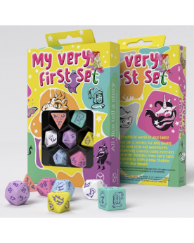 My Very First Set - Little Berry es una herramienta ideal para introducir a los más jóvenes en el mundo de los juegos de rol, además del coleccionismo. Cada dado tiene su propia combinación de colores, así como su propia fuente y grabados, a juego con el personaje de cuento de hadas representado en la cara superior. Efectivamente, el set consta de 7 dados diferentes con una atmósfera de cuento de hadas: ¡genial para empezar!