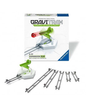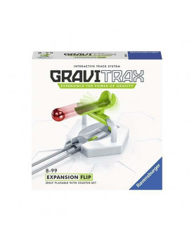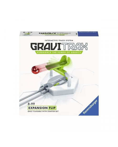¡Impulsa las bolitas hacia arriba! ¡Lanza con el Flip las bolitas hacia arriba con un espectacular giro de 180° y dale más energía al recorrido! Utiliza este accesorio junto con el Starter-Set de GraviTrax para añadir más diversión y movimiento a tu pista. ¿Hasta dónde llegará la bolita con el Flip?