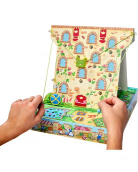 ¡Al agua! De nuevo, a algún habitante del castillo se le ha caído un objeto y ha acabado en el estanque.La princesa añora su bola dorada, el mago busca desconcertado su bola de cristal y el cocinero ha perdido una col. ¿Qué van a hacer? Únicamente la rana Chesca puede recuperar los objetos. Para escalar el escarpado muro de la torre y encontrar al dueño de la bola, la rana necesitará ayuda. En primer lugar, los jugadores abren la ventana para encontrar al habitante correspondiente. Después mueven la rana con la bola hacia él tirando con habilidad de los extremos del cordel. No obstante, deben tener cuidado de que ésta no caiga por el agujero equivocado. Aquél que con habilidad y cabeza consiga devolver el mayor número de objetos, gana el juego.