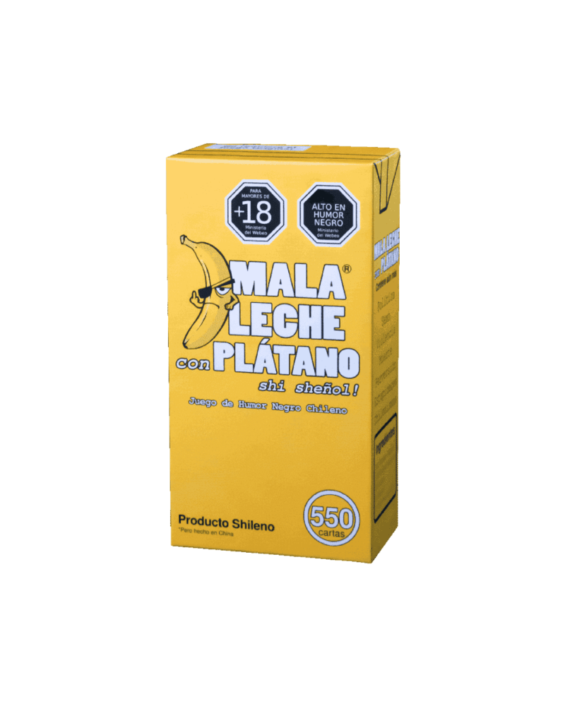 Mala Leche con Plátano es la expansión autojugable del infame juego de apuestas de «complete la oración» Mala Leche que combina los pensamientos más horribles e inmorales de nuestra enferma sociedad chilena.