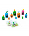 Este juego simple de memoria contiene 3 familias de Gobblers (Naranja, verde y azul) que se componen de 3 personajes: un niño(pequeño), un adolescente (figura mediana) y un adulto (figura grande). Al principio de la partida uno deberá esconder un Gobblers al azar y se pondrán uno dentro del otro para esconder a los más pequeños. Todos a la ves revelan 1 carta y deberán revelar que Gobblers es falta en la carta. Ej.: Sale una carta con un Gobblers mediano rosado y un Gobblers grande verde, entonces el que falta es: Gobblers pequeño azul. Este divertido juego tiene además ejercita la rapidez visual la que ayudará a que los niños resuelvan problemas más rápido.