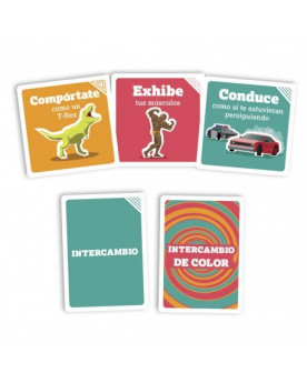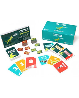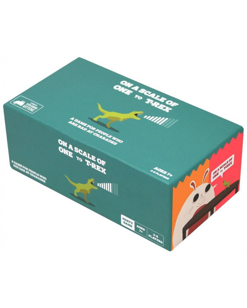 En una Escala de 1 a T-Rex es un juego party para la familia donde los jugadores ganan puntos actuando y adivinando la intensidad de las actuaciones de los demás. Este juego es una colaboración entre Exploding Kittens y el ganador del Spiel des Jahres Wolfgang Warsch.