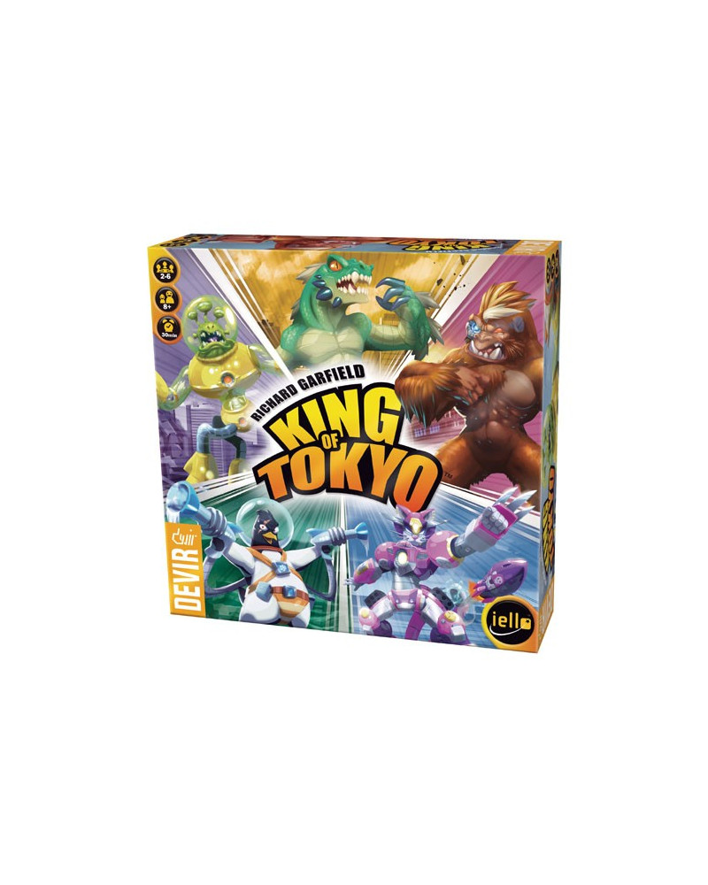 En King of Tokyo, un juego de Richard Garfield para de 2 a 6 jugadores, los participantes representarán el papel de un monstruoso mutante, robot gigante u otra extraña criatura alien, todos ellos felices por golpearse entre sí para convertirse en el único y solitario rey de Tokio.