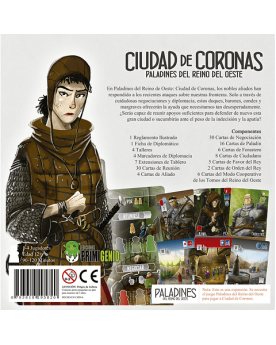 Nota: Paladines del Reino del Oeste: Ciudad de Coronas es una expansión, no puede jugarse por si sólo, requiere el juego base Paladines del Reino del Oeste para ser jugada.