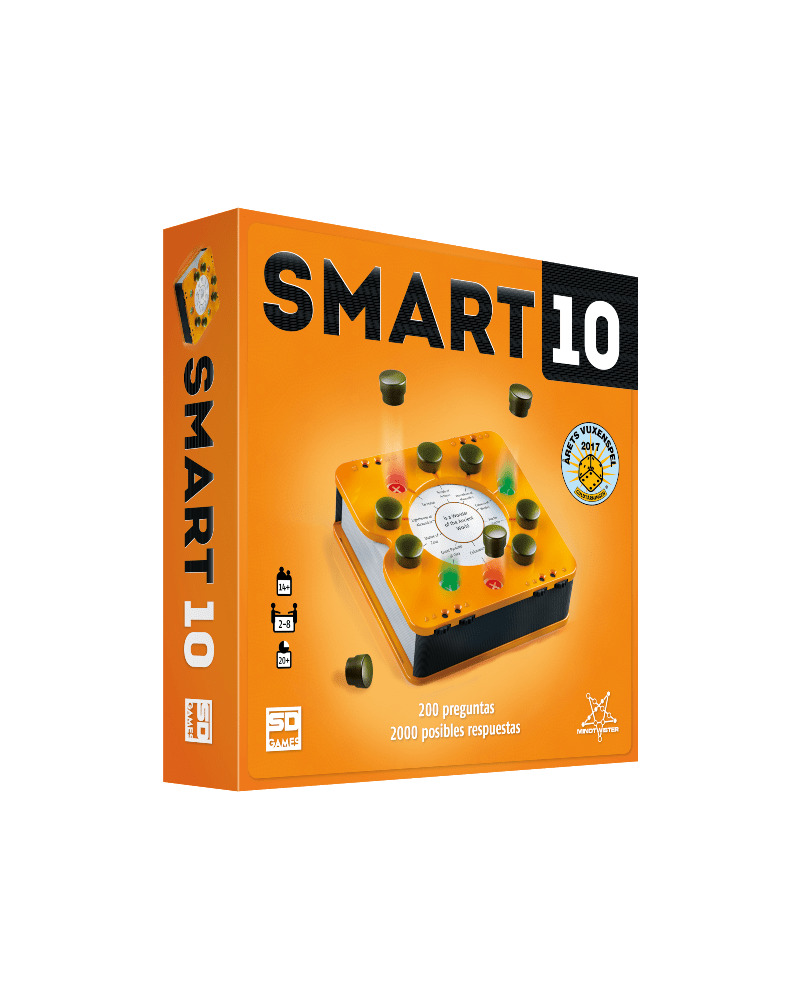 Todo el juego está incluido en la compacta caja Smart: las 200 preguntas y sus respectivas respuestas, los conta-dores de puntuación y los marcadores.