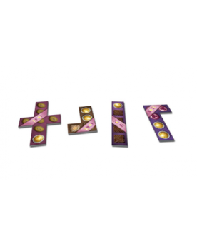 1 tablero de Tiempo, 2 tableros de Caja, 2 Corazones, 1 peón Neutral, 33 piezas, 5 Petit-four, 1 pieza Especial, 50 Bombones y 1 reglamento.