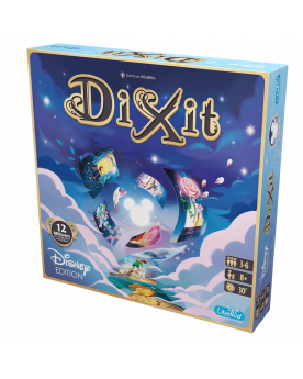 Las mismas reglas de Dixit con nuevo material, de 3 a 6 jugadores, con tablero, diales de votación, fichas de madera... ¡Todo recubierto con la magia de Disney!