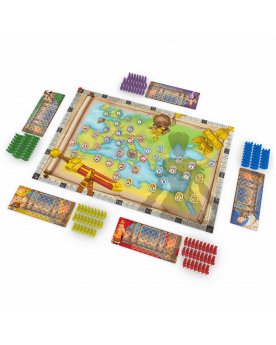 Construirás carreteras para conectar Roma con nuevas ciudades en todos los ámbitos. Cada vez que construyes una carretera, ganas puntos. Cada nueva Ciudad que alcances te proporcionará fichas de Ciudad y Tesoro que valdrán puntos al final del juego. El juego termina cuando Roma está conectada a todas las Ciudades del tablero. Después de sumar el valor de las fichas de Ciudad y Tesoro a los puntos obtenidos durante el juego, ¡el jugador con más puntos gana!