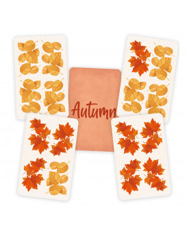 En Otoño, cada jugador se turna para colocar una carta sobre otras cartas jugadas anteriormente. Cada carta muestra cuatro grupos de hojas y, para poder jugarla, deberás colocarla superpuesta a otras cartas en juego, cubriendo uno o dos grupos. El objetivo es ser el jugador con mayor área de hojas conectadas al final del juego.