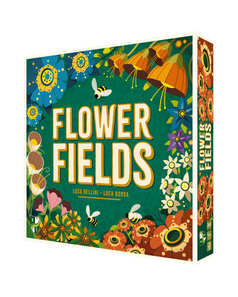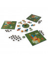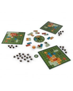 4 tableros de Jardín, 52 fichas de Flor, 12 fichas de Flor pequeña, 1 tablero de Campo, 50 Abejas, 1 ficha de Sol, 1 ficha de Participante inicial, 6 fichas de 5 Abejas, 3 fichas de IA, 1 bloc de puntuación, 1 bolsa.