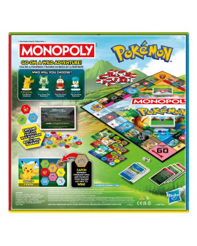 ¡Atrapa todos los Pokémon para ganar! El juego Monopoly Edición Pokémon combina el clásico juego Monopoly con la emocionante acción de Pokémon. Juega como un Entrenador de Pokémon que explora vastos territorios junto a su compañero Pokémon. En este divertido juego para niños, las propiedades son fantásticos lugares y los Poké Balls reemplazan el dinero. Los jugadores exploran lugares, atrapan distintos tipos de Pokémon salvajes para añadirlos a su hoja de registro y combaten contra Entrenadores rivales para recolectar Poké Balls. ¡Sé el primer Entrenador en completar la hoja de registro o el último Entrenador con Poké Balls para ganar!